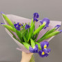 Букет из синих ирисов из розовых альстромерий