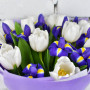 Букет из синих ирисов и белых тюльпанов в Новомичуринске