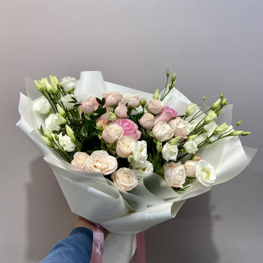 Букет из пионовидных роз и белых эустом в Новомичуринске