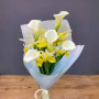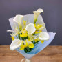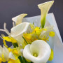 Букет из желтых ирисов и беллых калл в Новомичуринске